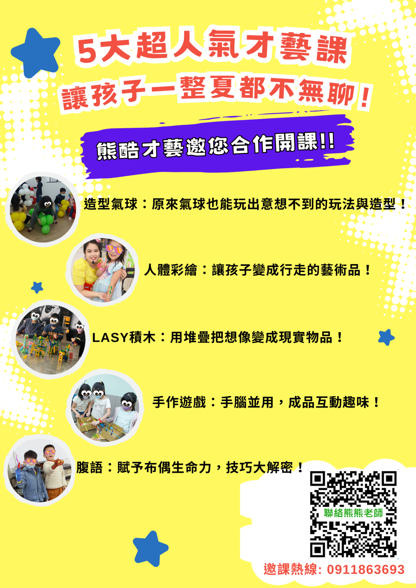 熊酷才藝用心記錄與每個機構的授課項目單元,所以即使每次寒暑假都邀課,也不重複內容,學生每次報名依然有新鮮感~