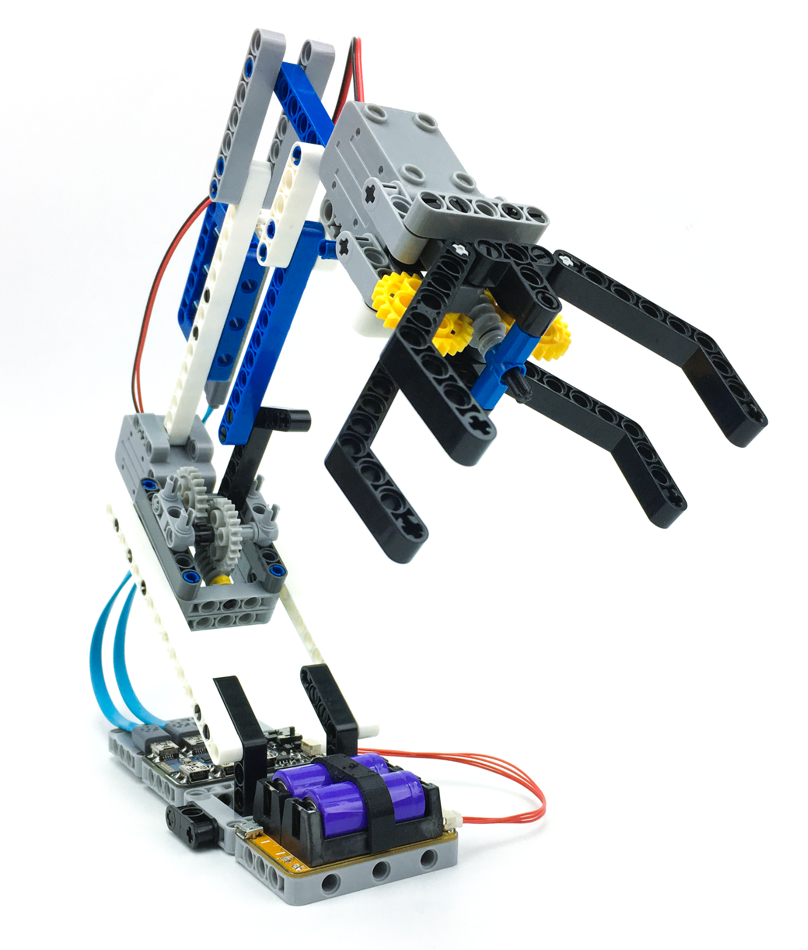 在經過好幾個小時的琢磨以及組裝之後機械手臂終於組裝完成了,心情當然是 既興奮又有滿滿的成就感。一邊開著 ScratchPi 的程序輸入腳本一邊想著讓它趕快動起來,但是在腳本完成後使用遙控器操縱的時候又發現了機械臂電機的部分無法行動。拆卸後才發現齒輪的排列順序錯誤,在經過較長的拆除再組裝的過程之後才終於搞定了這個問題,因為我也怕會誤拆其他部分的零件然後整個步驟都會被搞亂。 在機械手臂終於順利的在腳本的輸入後遙控並移動起來之後,整個人成就感滿滿,看著自己組裝好的機械手臂許久,也感覺在組裝後更加了解了機械手臂的整個運作思路以及邏輯了。