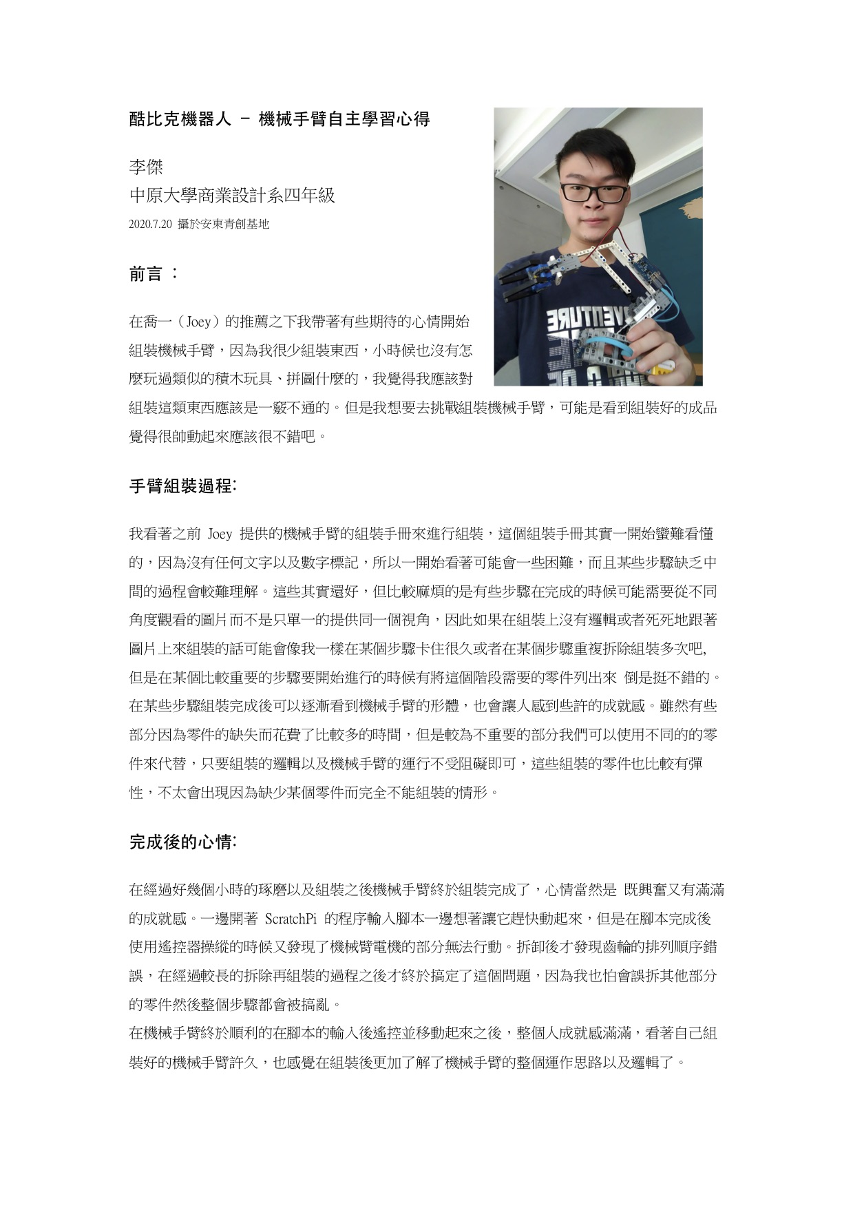 李傑 中原大學商業設計系四年級 2020.7.20 攝於安東青創基地